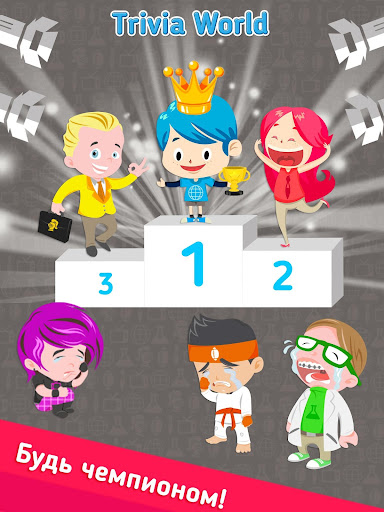 Вы будете конкурировать с игроками со всего мира. Вы должны ответить на вопросы лучше, чем другие, чтобы занять первое место в мире и в вашей стране таблицы лидеров. Пригласите своих друзей, чтобы сделать конкурс более увлекательным.