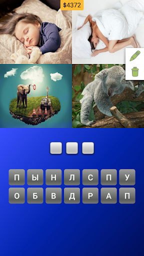 Что бы угадать то что скрыто нужно проанализировать все 4 картинки и понять что у них общего! Используй подсказки и зарабатывай баллы, за которые ты и можешь покупать отдельные буквы.