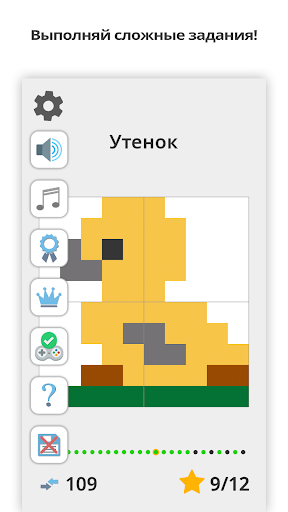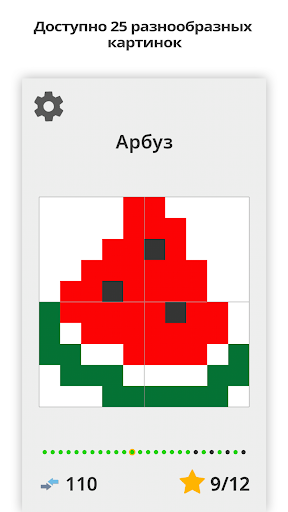 Вам предстоит пройти множество уровней из черно-белых и цветных изображений. Начни с простого черно-белого 5х5 и дойди до цветного 15х15.