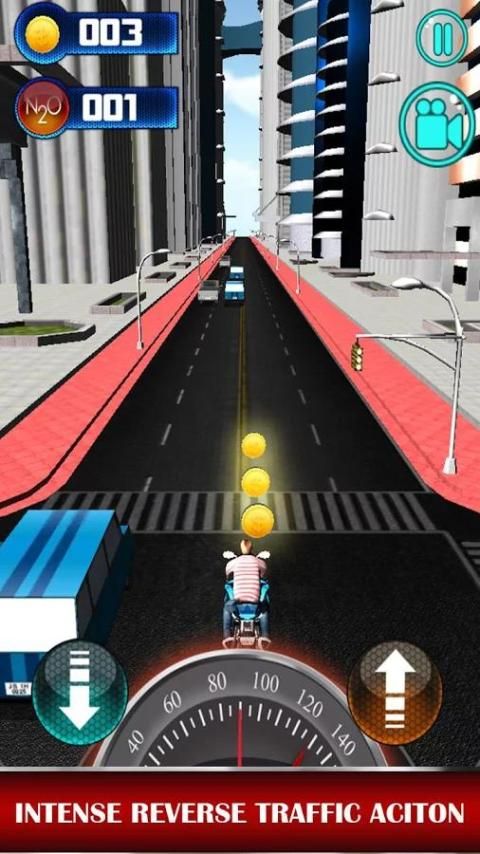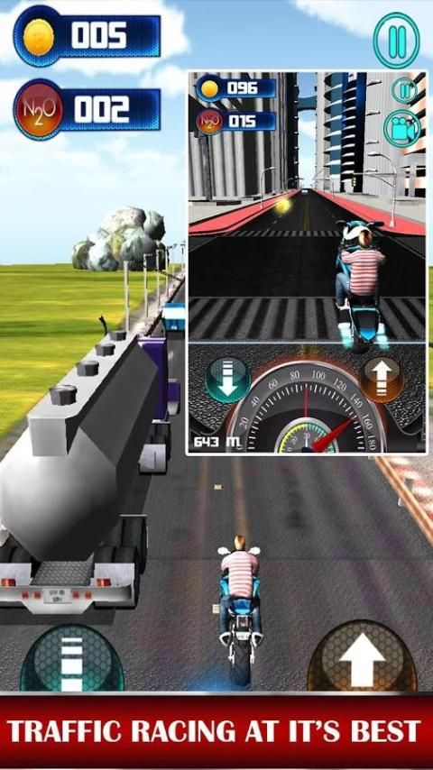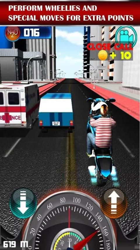 Драйв мотоцикл и избежать дорожных транспортных средств при увеличении скорости до предела. Вы можете ездить на двух- или единоличному дорогу с односторонним движением. В то время как уклонение движения на высоких скоростях вы получаете деньги, и вы можете приобрести другие более эффективные и быстрые велосипеды. Вы конкурировать с другими игроками, и вы можете увидеть свой ранг на глобальных лидеров.