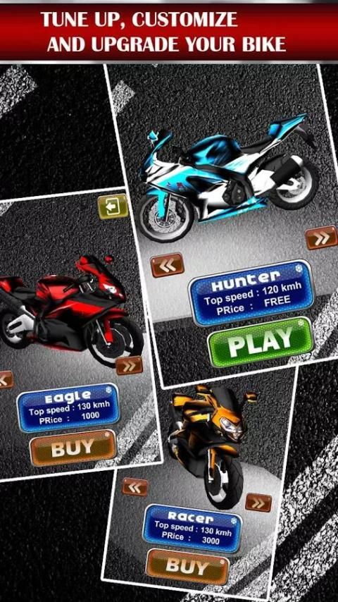 - Асфальт Мото есть 10 мотоциклов на выбор