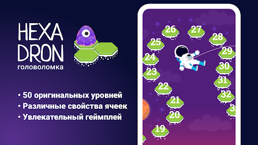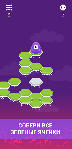 Собери все зеленые шестигранники, тренируй логику и мозг в игре головоломке! Но будь осторожен, зеленые плитки исчезают после того, как на них наступишь - не останься посреди космоса!