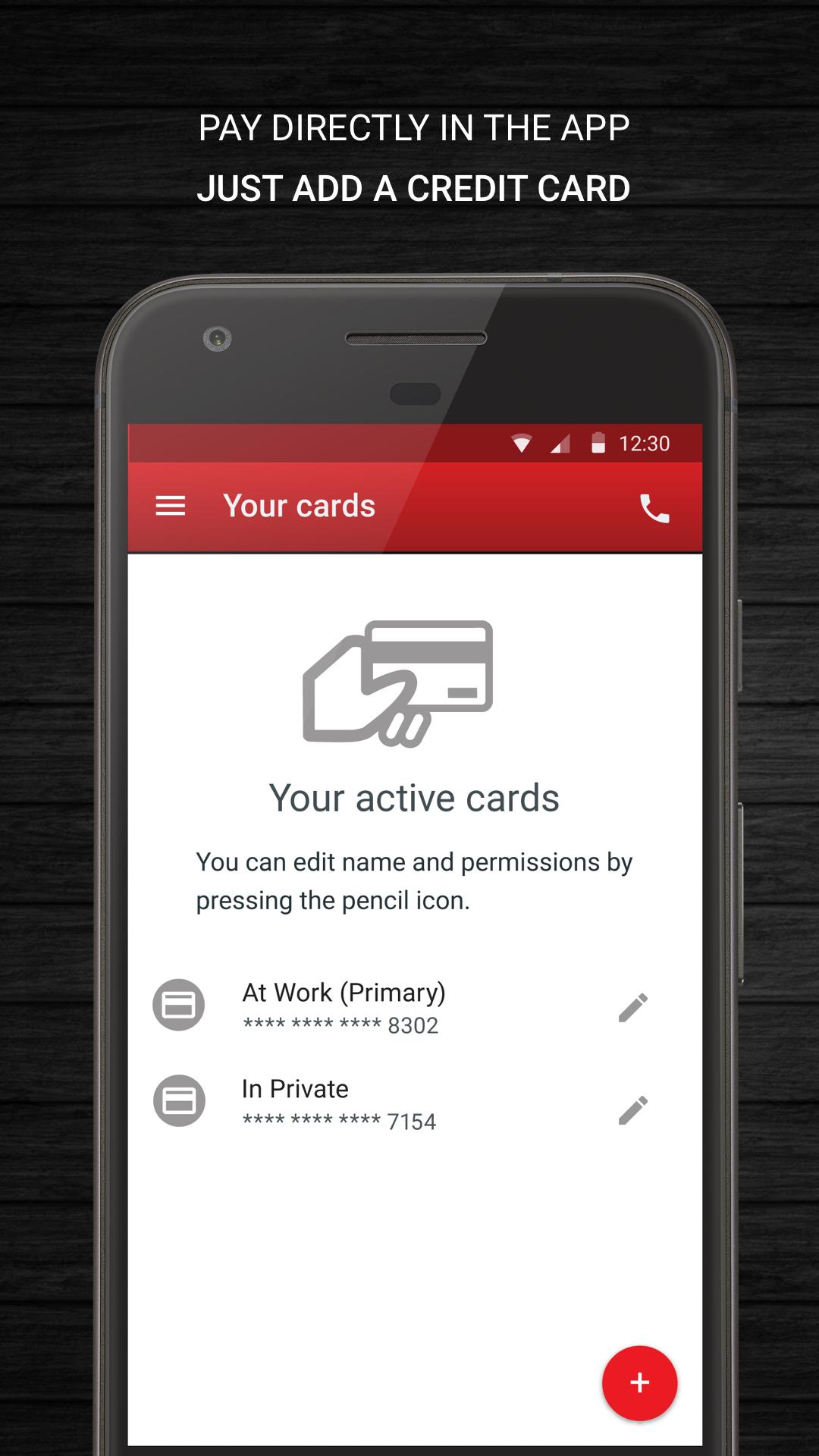 - Choose to pay with credit cards in the app