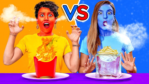 * การรับประทานอาหารร้อน VS เย็นเป็นเวลา 24 ชั่วโมง!สุดท้ายที่จะหยุดการกินชนะ!DIY Pranks โดย 123 GO!ท้าทาย