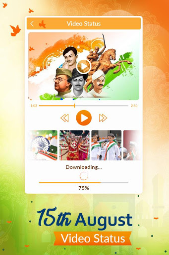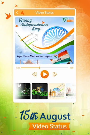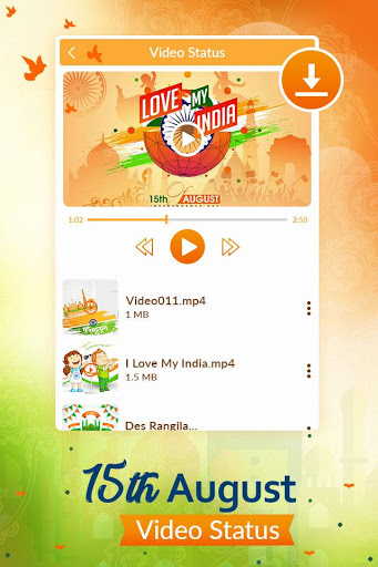 15th August Independence Day Status App is an excellent status application with different types of videos such as patriotic songs and dialogues.15th August Independence Day status made it simple to express your mood by sharing social status videos.