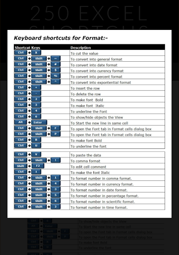 ทางลัด 250 Excel - แอปพลิเคชั่นให้ปุ่มลัดพื้นฐานและขั้นสูงใน Excel,
