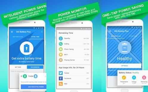 With battery time monitoring, power saving mode and battery charging time reducer, 360 Battery saver help your phone keep batteries plus all the time.