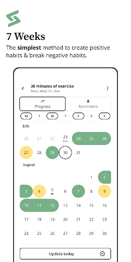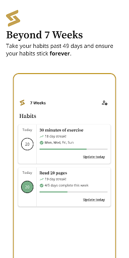 พร้อมสัญญาณเตือนที่กำหนดเอง, ชนิดนิสัยที่ยืดหยุ่น, วิดเจ็ตหน้าจอหลัก, อินเทอร์เฟซการติดตามนิสัยที่สวยที่สุดและตัวเลือกการปรับแต่งหลาย ๆ สำหรับแต่ละนิสัย 7 สัปดาห์เป็นแอป # 1 ที่จะได้รับ คุณติดตามการทำนิสัยและเป้าหมายของคุณ