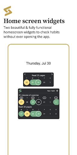 - การเข้าถึงอย่างรวดเร็วในการตรวจสอบนิสัยจากวิดเจ็ตหน้าจอหลัก & การแจ้งเตือน