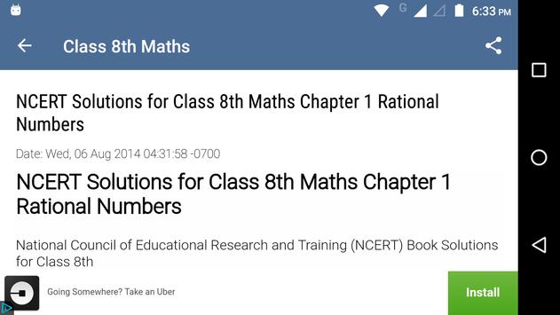 8th Class Maths - app is specially designed for the NCERT class 8 students to help them prepare for their examinations. This app having NCERT syllabus Maths Class 8th solutions can be useful in two scenarios - To verify your answer after you solve the exercise problems and other one is Check the solution when you stuck.