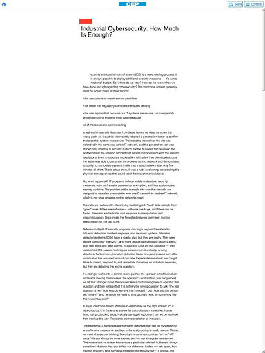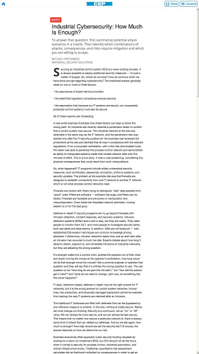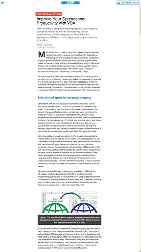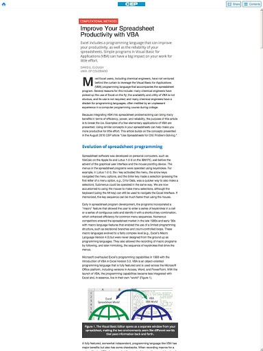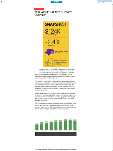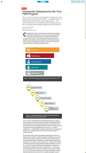 แต่ละประเด็นของ CEP เต็มไปด้วยข้อมูลที่เป็นประโยชน์สำหรับวิศวกรเคมีรับข้อมูลเชิงลึกเกี่ยวกับปัญหาทางเทคนิคเช่นความปลอดภัยการจัดการสิ่งแวดล้อมของเหลวและการจัดการของแข็งปฏิกิริยาและการแยกเทคโนโลยีสารสนเทศและอื่น ๆ