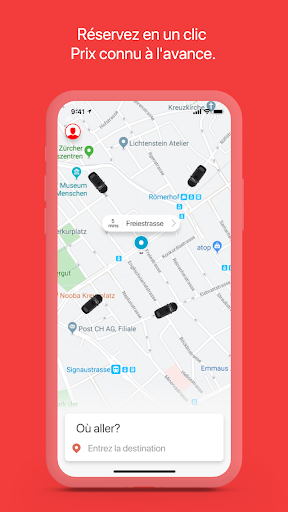 • Saississez vos points de départ et d’arrivée, choisissez votre type de véhicule et estimez le prix de votre course.