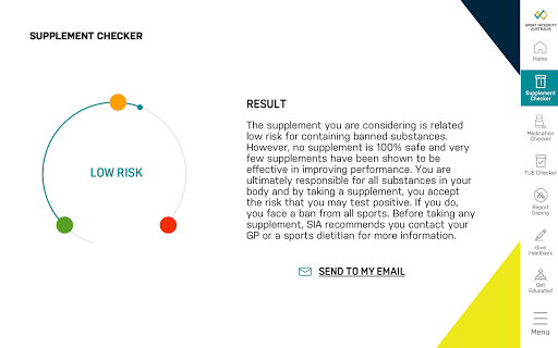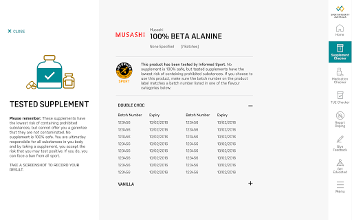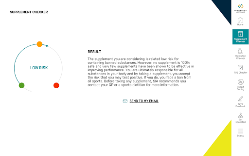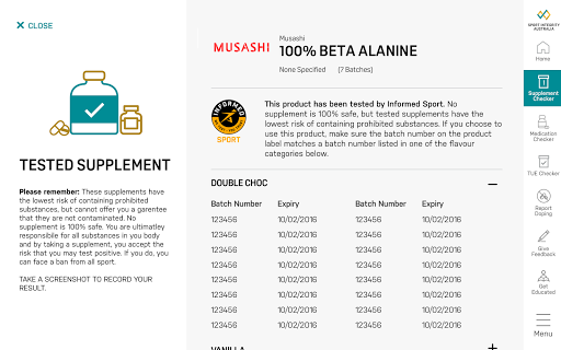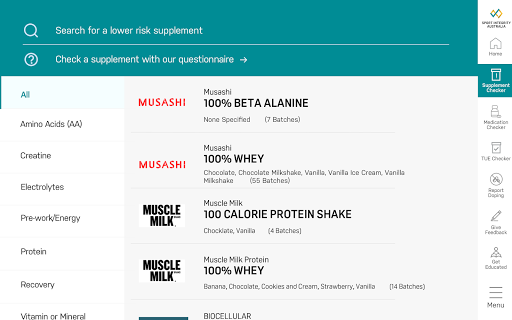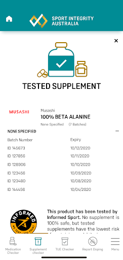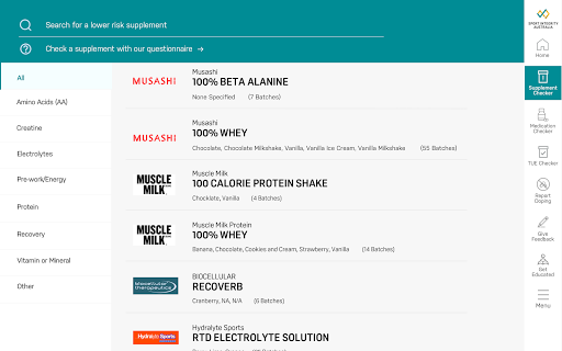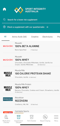 - ฐานข้อมูลผลิตภัณฑ์เสริมอาหารที่ขายในออสเตรเลียเพื่อช่วยคุณค้นหาผลิตภัณฑ์ที่มีความเสี่ยงต่ำและ ลดโอกาสในการทดสอบในเชิงบวก