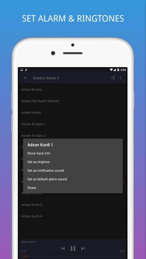 Mungkin anda tertarik untuk belajar langgam adzan yang merdu? Aplikasi ini bisa anda jadikan referensi untuk belajar.