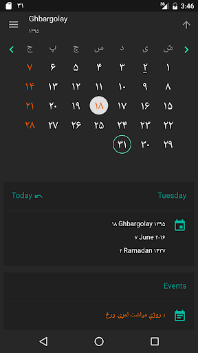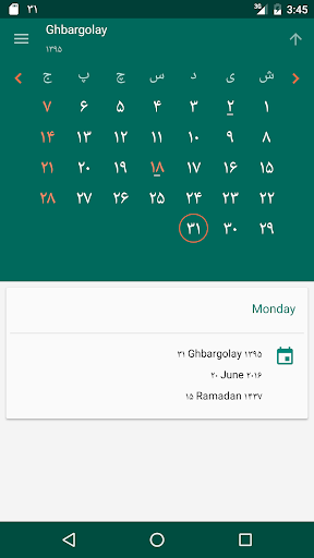 หนึ่งใน คุณสมบัติหลักของแอปพลิเคชันคือการแปลงระหว่างวันที่: จากอิสลามไปยัง Gregorian ตั้งแต่วันที่อัฟกันไปจนถึงเกรกอเรียนจากชาวอัฟกันไปยังอิสลามและในทางกลับกัน เราทำให้คุณสมบัตินี้ใช้งานง่ายมากและยังถือว่ามีความแม่นยำของมัน