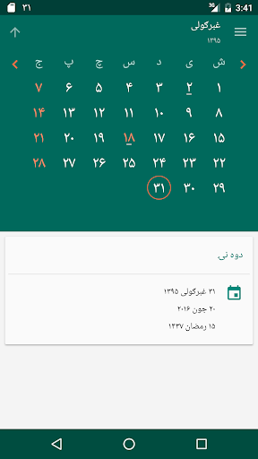 แอปพลิเคชั่น Afghan Calendar (Jalali) ที่สมบูรณ์แบบและสมบูรณ์แบบสำหรับอุปกรณ์ Android ซึ่งแสดงถึงวันที่ในอัฟกันหรืออิหร่าน แอปพลิเคชั่นนี้มีคุณสมบัติที่ยอดเยี่ยมมากมายเช่น: ปฏิทินอัฟกานิสถานหรือปฏิทินอิหร่านปฏิทินอิสลามหรือปฏิทินจอร์เจียรายการของเหตุการณ์และวันหยุดประจำชาติ, ตัวแปลงวันที่, วิดเจ็ต, เวลาสวดมนต์, สวดมนต์ปลุกและอีกมากมาย