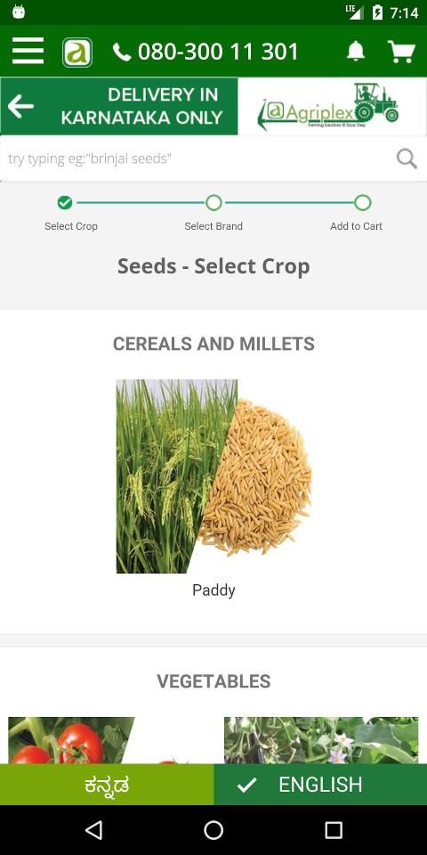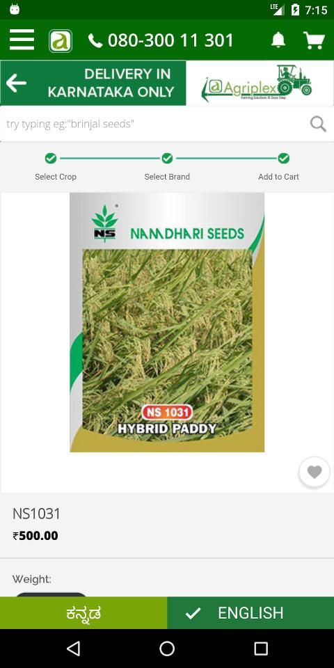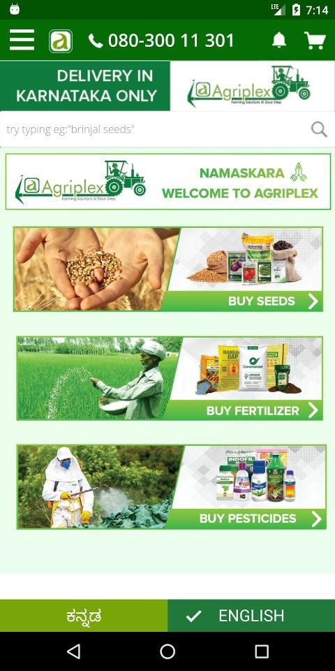 For the first time, Farmers get an option to choose wide variety of quality SEEDS, FERTILIZERS, PESTICIDES of Top Brands from our mobile application. At any point of time, Farmers can also call our HelpPoint center 080-61116333 to seek Free Agricultural advice.