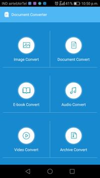 plus In this app you will find converter. You can convert files Documentary, Image, E-book, Audio-Video and Archive