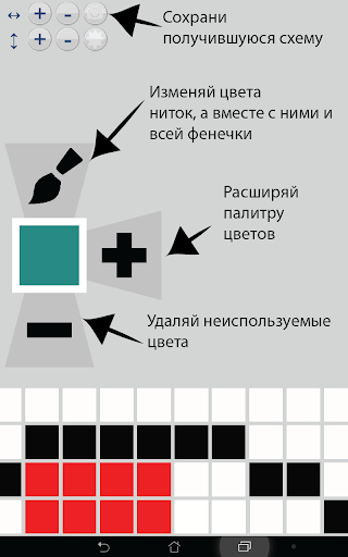 - возможность сохранения готовой фенечки (папка сохранения рисунков - Alpha-Pattern в корневом каталоге телефона)