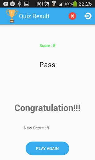 User has 10 seconds for give the answer of each question and can view the result as score as well as highest score.