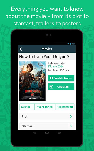 • Create and share list of movies you have ‘watched’ or ‘want to see’