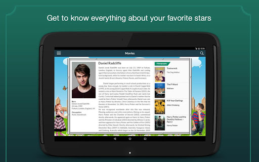 • Explore all the movies through an easy to use movie shelf and get to know about celebrities, actors, directors and others