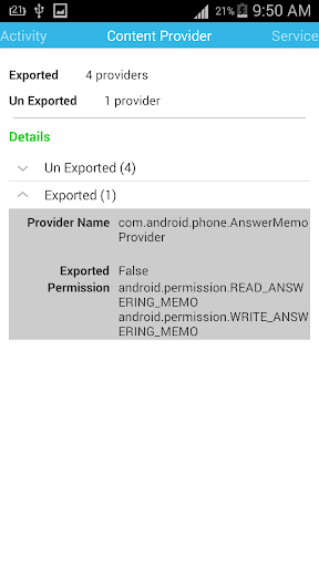 * Verify directly activities, services, broadcast receivers and content providers of apk