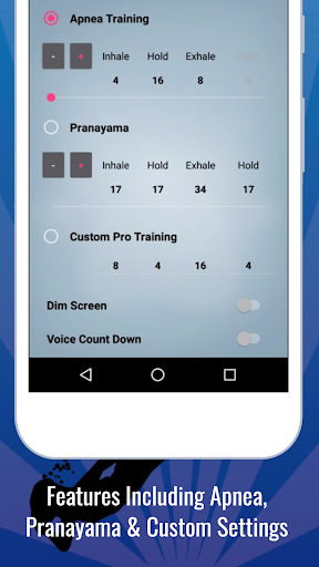 This is the same training principle used by apnea divers. It’s based on a yoga technique which strengthens the diaphragm muscles allowing you to fill your lungs with more oxygen and releasing more carbon dioxide while exhaling. The system is relatively simple and depends on finding the right time intervals which are provided by the program, thus letting you relax and concentrate on your breathing. This will guarantee maximum training success.