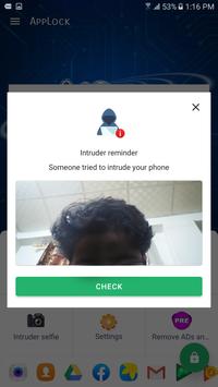 When some one tries to open any app with wrong pattern and password it takes photo of that person or intruder.