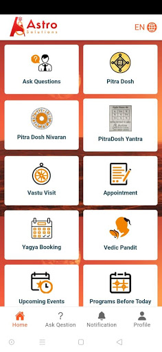 Astro Solutions เป็นแพลตฟอร์มที่คุณสามารถค้นหาวิธีแก้ไขปัญหาทั้งหมดที่เกี่ยวข้องกับโหราศาสตร์ |ในแอปพลิเคชันนี้คุณสามารถถามคำถามใด ๆ ที่เกี่ยวข้องกับชีวิตของคุณ |ในอีกคำหนึ่ง Astro Solutions พร้อมที่จะแก้ปัญหาเช่น Vastu Dosha และ Pitra Dosha |Vastu-Visit (ที่อยู่อาศัย, เชิงพาณิชย์), Dosh Nivaran Yantra, Yagya จอง, เวทปานดิท, ถามคำถาม / คำถามของคุณ |โซลูชั่นโหราศาสตร์Kundaliดูดวง