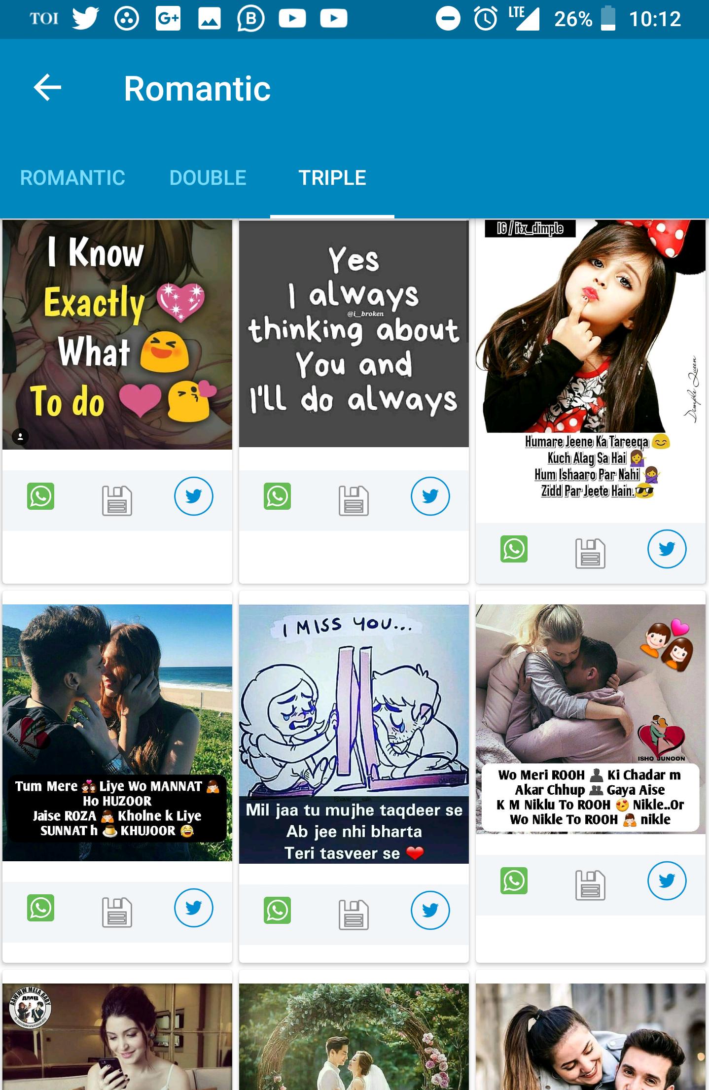 romantic status in hindi
