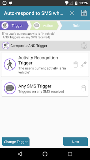 •ระยะเวลาที่ใช้งานกฎ - ตั้งระยะเวลาที่ใช้งานสำหรับแต่ละกฎ มีประโยชน์จริงๆถ้าคุณต้องการกฎบางอย่างที่จะใช้งานเฉพาะในช่วงกลางวันวันหยุดสุดสัปดาห์เพียงหนึ่งชั่วโมงต่อวันเป็นต้น - •เซ็นเซอร์ทริกเกอร์ - ใช้เซ็นเซอร์อุปกรณ์ทั้งหมดของคุณเป็นทริกเกอร์สำหรับการกระทำที่ต้องการ ซึ่งรวมถึงการใช้เซ็นเซอร์ทั้งหมดที่รองรับโดย Android - accelerometer, แสง, ความใกล้ชิด ฯลฯ