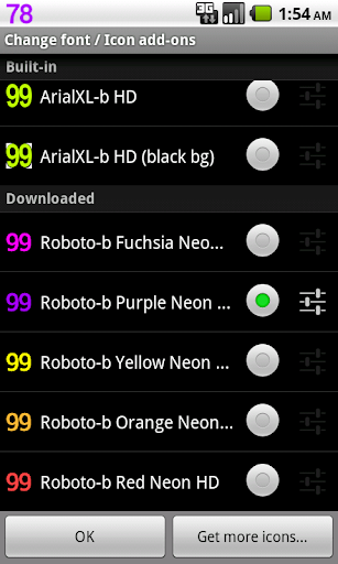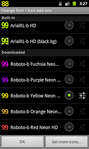 For Android 3.x/4.x users who wish to have the brightest colors possible on dim status bars, look for our HD add-ons with “b” after the font name. Download HD add-ons within Battery Notifier Pro BT or search for "bnbt" in your browser at Google Play.