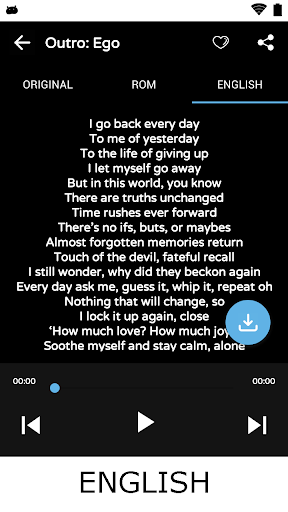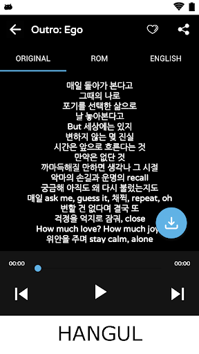 - Lyrics consist of 3 variants. English, Korean and Roman.