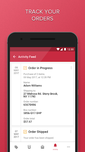 • Order Activity - Visit the Activity screen to see order and shipment updates and to receive rental due date reminders.