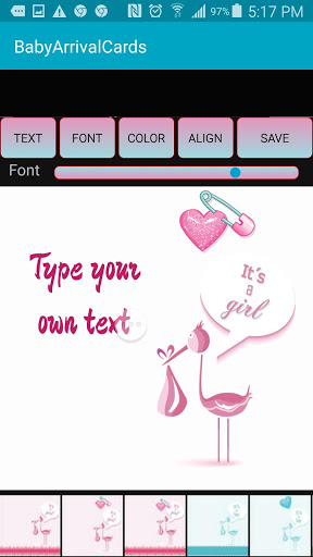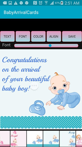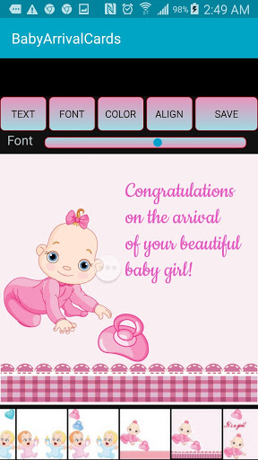- เพิ่มข้อความขอแสดงความยินดีในวินาทีบันทึกไปยังแกลเลอรี่;"Baby Card" ของคุณพร้อมที่จะส่งไปยังคนที่คุณรัก!