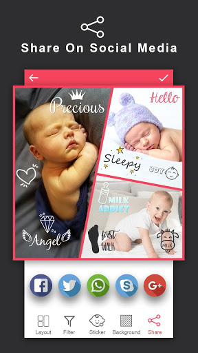 Baby Photo Collage Maker can help you create Baby Photo Collage - Create your own custome Collages from Layout, Sticker, Text and filter,background alos new futures.
