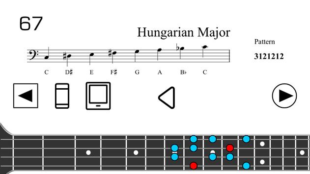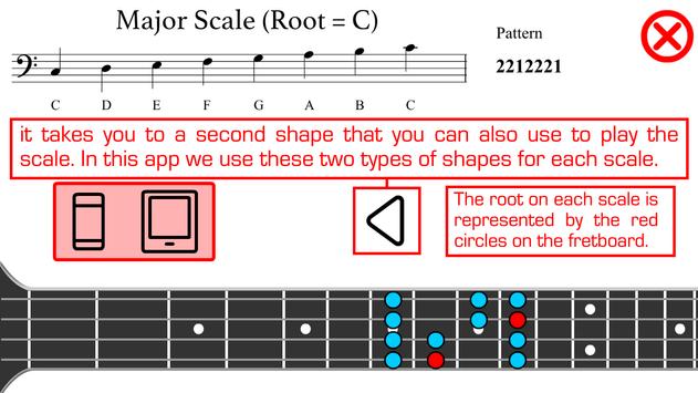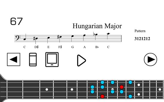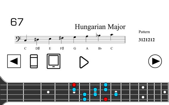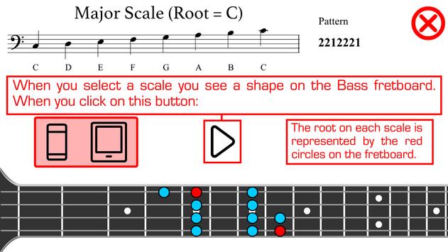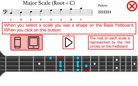 - It shows the notes of each scale on a virtual Bass Guitar so you can play it.