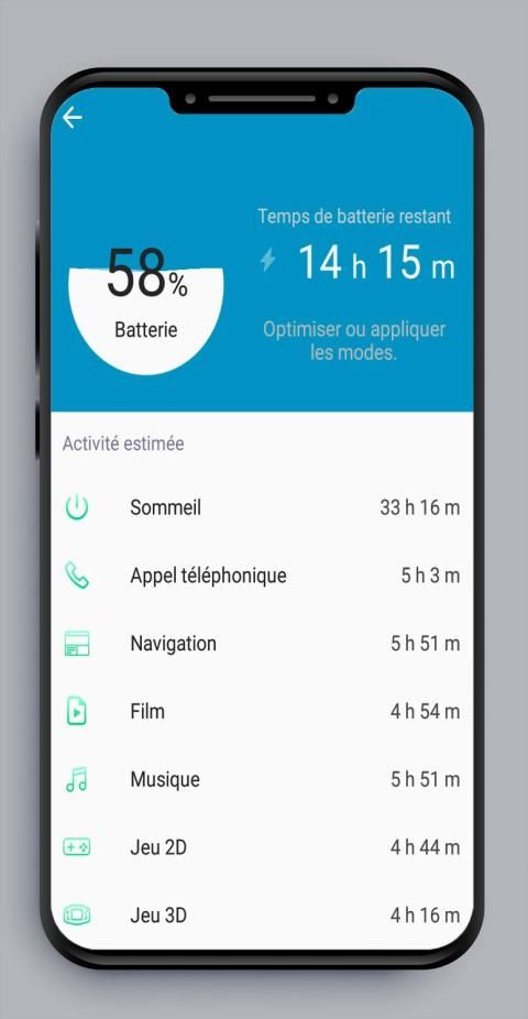 Discover how long your battery will last under a variety of situations (playing games, WiFi (active), etc.). Clearly show the status of battery life and usage.