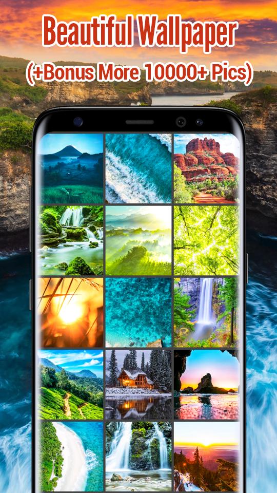 Enjoy Beautiful Wallpaper with Waterfall, Mountain, Snow, Lake, Beach, Sea and River.