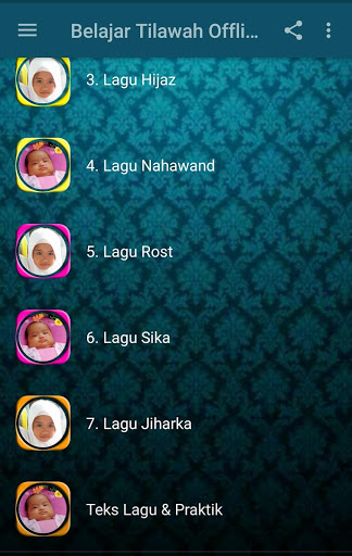 Aplikasi ini berisi nagham(lagu) belajar tilawah Al-Quran lengkap dengan contoh bacaan.