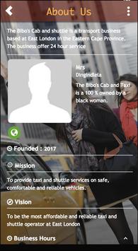 The Bibo's Cab and Taxi is a taxi and shuttle business based at East London in the Eastern Cape Province. The business operate from East London airport. Offers 24 hour service.
