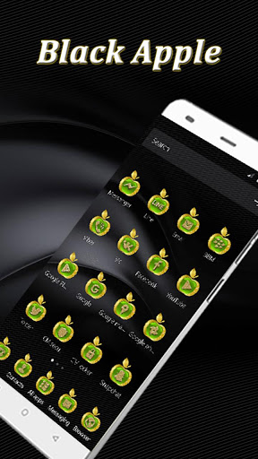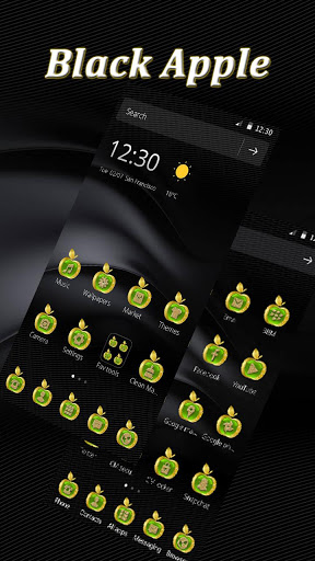 Download Black simple style Apple Theme end feel all beauty of warm summer dusk. Enjoy beautiful black background of gentle green gold color, green apple and simple styles. Set this new free app right now and give your android phone desktop an exciting new look.