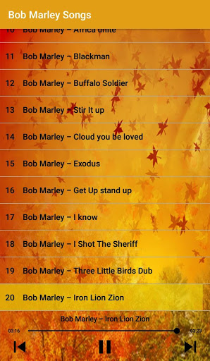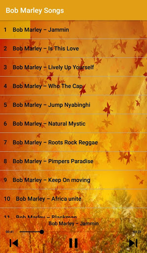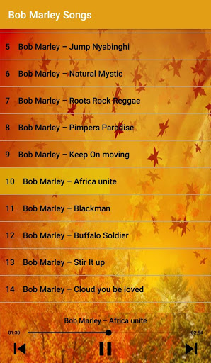 This application provides a collection of popular songs from Bob Marley. Choose and play your favorite songs anywhere and anytime