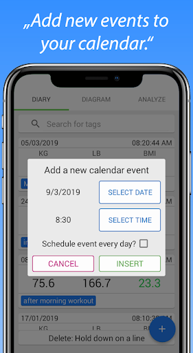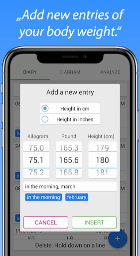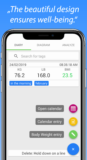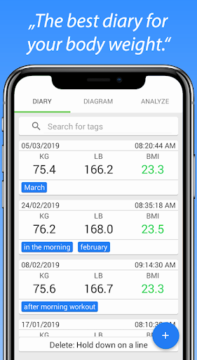 Diary น้ำหนักตัวที่กว้างขวางนี้ให้ฟังก์ชั่นทั้งหมดที่คุณต้องการในการบันทึกติดตามและวิเคราะห์น้ำหนักตัวของคุณ