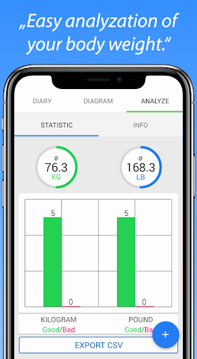 - ไดอารี่ที่ยอดเยี่ยมและชัดเจนสำหรับน้ำหนักตัวของคุณ
