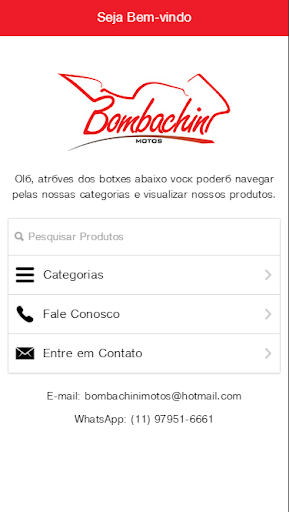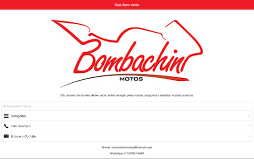 รถจักรยานยนต์ BOMBACI - อะไหล่รถจักรยานยนต์ความเร็วและ Naked ดาวน์โหลดแอพของเราและเข้าถึงผลิตภัณฑ์ทั้งหมดของเราสนุกและส่งงบประมาณโดยไม่มีความมุ่งมั่น ข้อมูลเพิ่มเติมเกี่ยวกับเว็บไซต์: www .bombachini.com.br