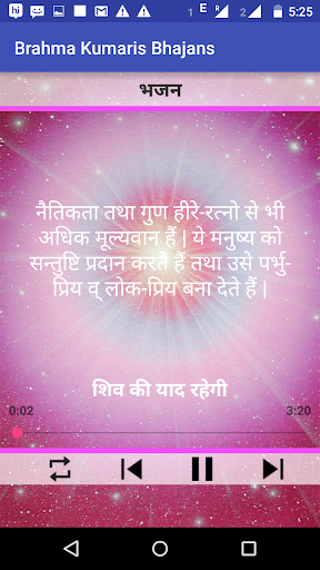 bhajan player has play,pause,next,previous,single repeat and all repeat options.