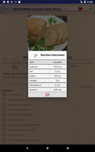 สูตรอาหารมีให้กับคุณค่าทางโภชนาการแคลอรี่ - จำนวนการเสิร์ฟนั้นมีให้ง่ายในการใช้ UI อินเทอร์เฟซ - รองรับทั้งโหมดแนวตั้งและแนวนอน
