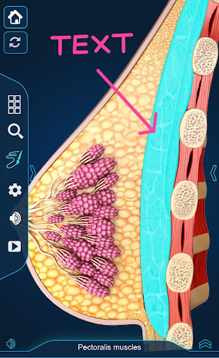 Pro Breast Anatomy Proแอพให้ผู้ใช้ดูที่เต้านมหญิงในเชิงลึกเพื่อให้พวกเขาสามารถเลือกชิ้นส่วนเต้านมแต่ละชิ้นรวมทั้งวาดหรือสีขาวบนหน้าจอและแชร์ภาพหน้าจอการออกเสียงเสียงสำหรับคำศัพท์ทางกายวิภาคทั้งหมดและอื่น ๆ